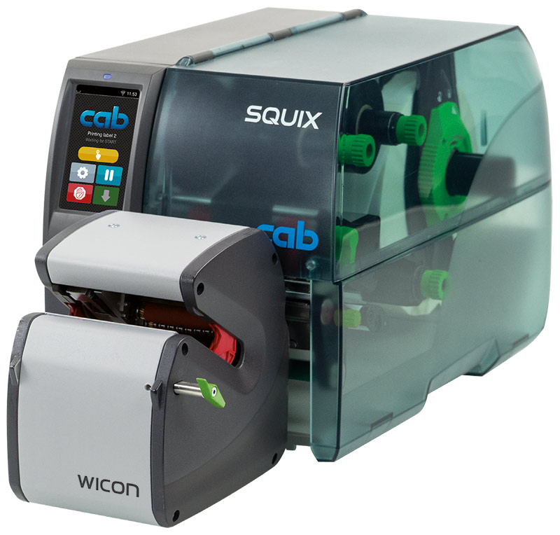 CAB od ponad 40 lat opracowuje i produkuje rozwiązania w zakresie etykietowania. W ofercie znajdują się drukarki termotransferowe, systemy umożliwiające w pełni zautomatyzowaną aplikację etykiet, dyspensery, taśmy termotransferowe i etykiety. CAB zapewnia obecnie najbardziej rozbudowaną gamę akcesoriów na rynku, rozszerzając funkcjonalność urządzeń, aby zaspokoić wszelkie wymagania. Odpowiedzią firmy CAB w zakresie niezawodnego etykietowania kabli, przewodów, rur i okrągłych prętów po obwodzie jest aplikator owijający WICON. Operacje etykietowania w aplikatorze WINCON wymagają wycentrowania materiałów w drukarce etykiet, a także wąskiego wałka drukującego. Dedykowanym urządzeniem drukującym do zastosowania aplikatora WICON jest model drukarki etykiet SQUIX 4 MT. Taki zestaw stanowi szybkie, półautomatyczne rozwiązanie do etykietowania produktów cylindrycznych o średnicy od 2 mm do 16 mm.