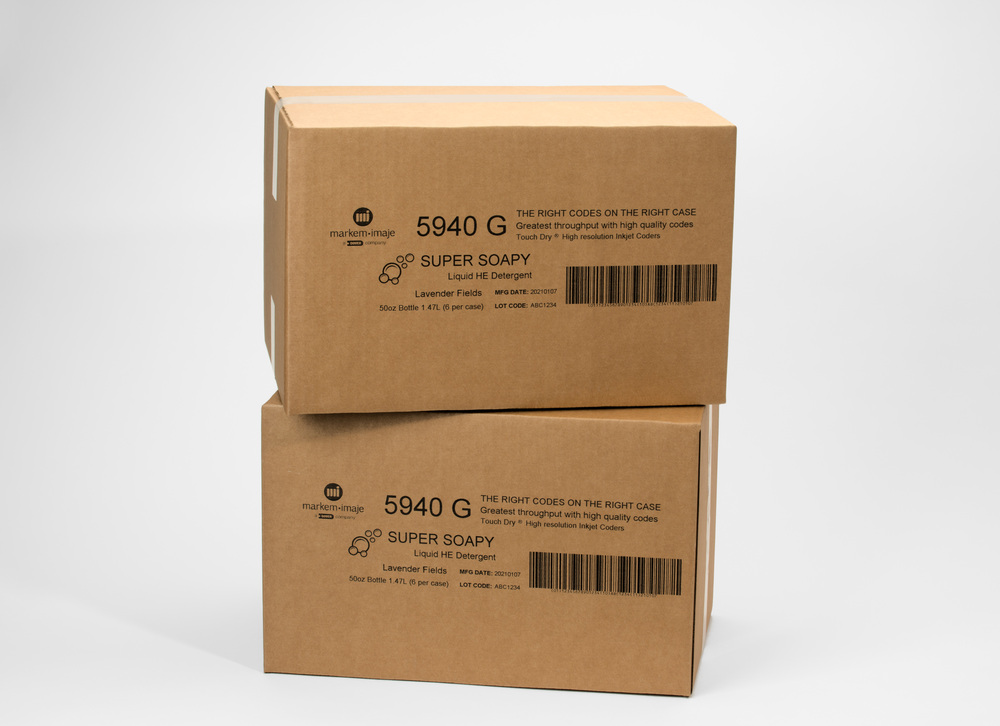 Drukarka dużych znaków wysokiej rozdzielczości TouchDry® 5940 G, pracująca w technologii piezo, drukuje kody kreskowe klasy C lub wyższej, tekst i grafikę na opakowaniach kartonowych, tackach i folii przy użyciu łatwego w obsłudze 10-calowego kolorowego interfejsu użytkownika.