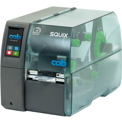 Firma Cab opcjonalnie instaluje moduł do odczytu i zapisu UHF RFID oraz antenę RFID do drukarek sprawdzonej serii SQUIX. W rezultacie markery UHF RFID mogą być czytane w locie i wyświetlane na interfejsie drukarki GUI, dane mogą być zapisywane i weryfikowane. Zależnie od aplikacji , dane mogą być zapisywane w różnych sektorach pamięci na znaczniku RFID. Druk jest wyzwalany tylko po sprawdzeniu. Nieprawidłowe etykiety są identyfikowane jako nieważne. Anteny RFID są odpowiednie do powszechnie stosowanych znaczników RFID , oraz wymagań na bardzo wrażliwe sygnały i metalowe powierzchnie. Specjalistyczna metoda kalibracji pozwala optymalnie pozycjonować położenie do odczytu i zapisu, i efektywnego działania.